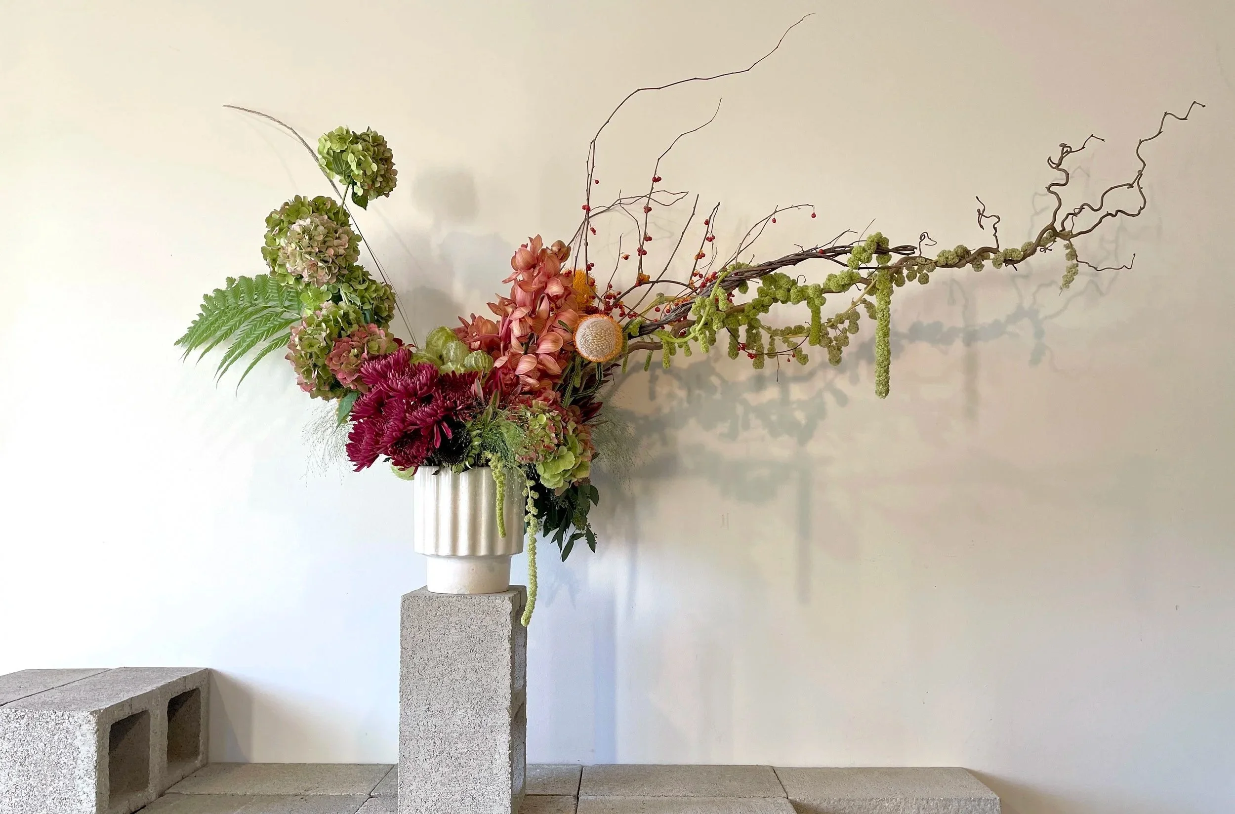 We work closely with galleries, museums, and private clients to create unique botanical designs. Whether it's echoing the sweeping lines of a sculpture through sinuous vines, or reflecting the palette of a painting in a carefully composed floral arrangement, we strive to create a seamless integration of art and nature.